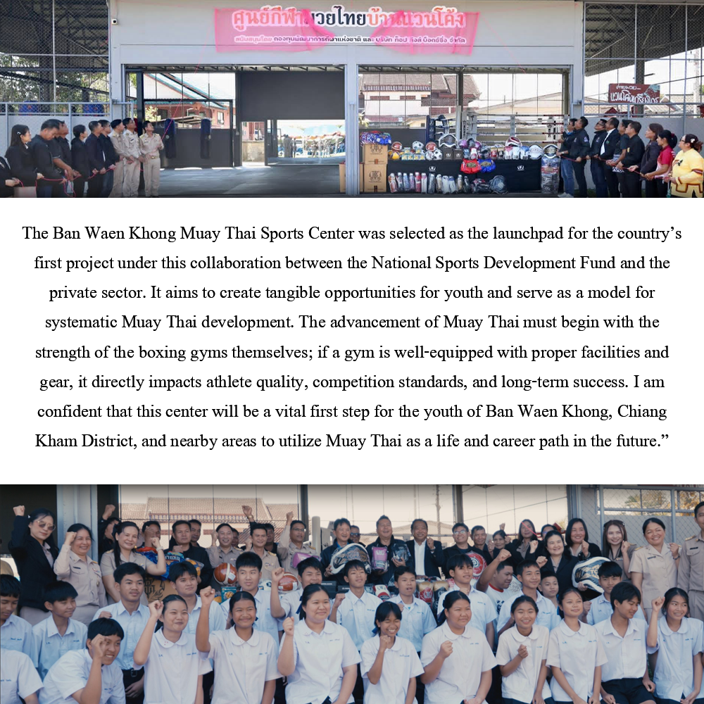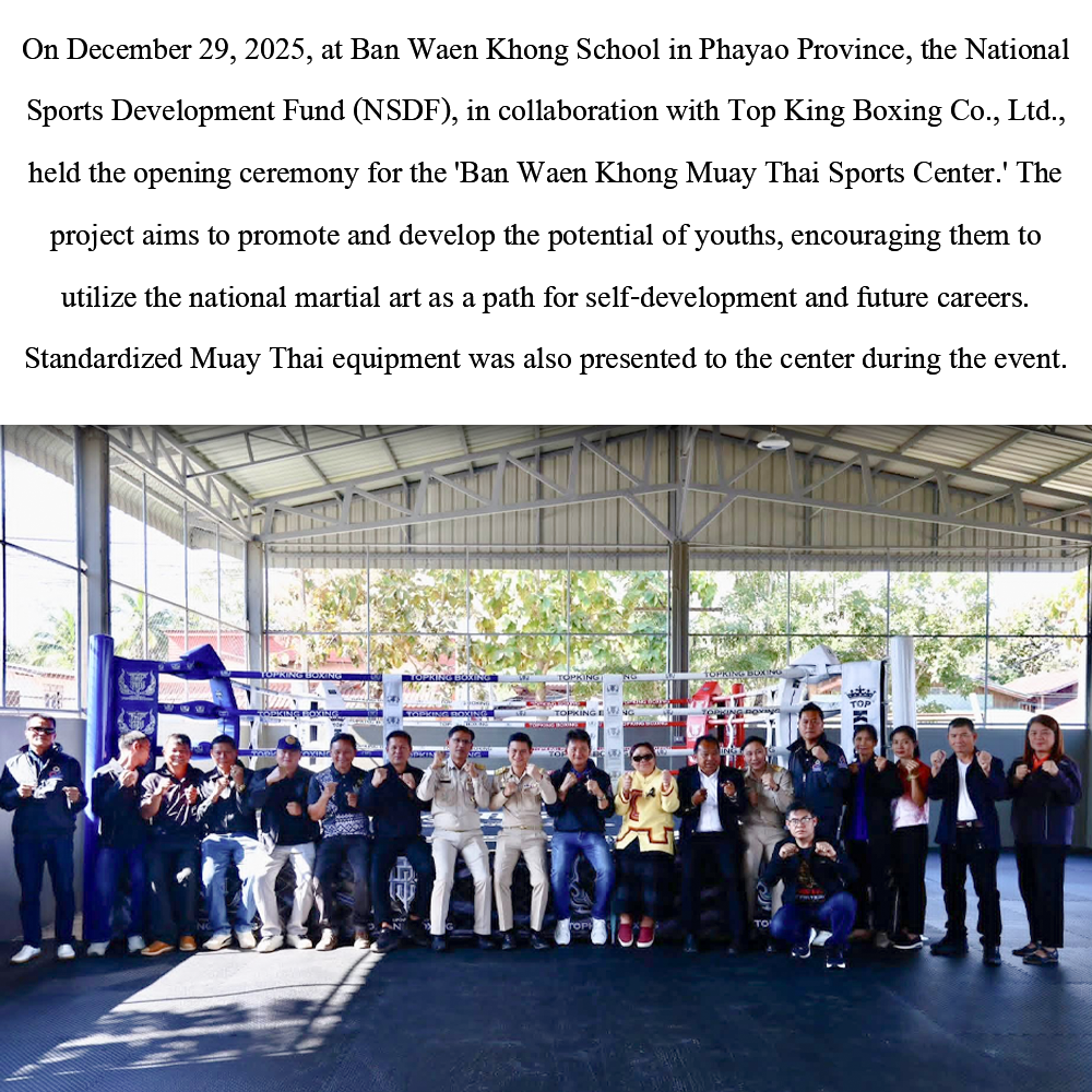 "The National Sports Development Fund (NSDF), in collaboration with Top King Boxing Co., Ltd., held the opening ceremony for the Ban Waen Khong Muay Thai Sports Center.